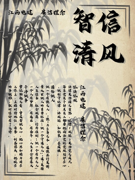 财务资金部党支部《承诺》设计说明 作者:蔡哲 周萍 核心构图是一个醒目的“廉”字,但构成它的并非寻常笔墨,而是部门全体员工亲手按下的一个个鲜红手印。按下的手印,代表了一种无声而有力的宣言:廉洁,不是一句空洞的口号,而是全体员工发自内心的认同,是全体员工将廉洁从业践行到底的承诺。这承诺是对组织的忠诚,也是对自身财务职业尊严的维护。这幅作品不仅是部门廉洁文化的艺术呈现,更是一份面向全体成员的无声动员令和一份面向组织的庄重保证书,彰显了财务资金部党支部打造廉洁高效团队、守护企业健康发展根基的坚定决心。 市场管理部党支部《智信清风·江西电建》设计说明 作者:陈识远 1.清晰传达理念:准确、醒目地展现“依法依规,清白做人,干净做事”的公司核心廉洁理念及其内涵,加强员工对其的认同感。 2.体现企业特质:融入“智信清风”元素,强调江西电建在廉洁文化建设中的廉洁理念。 3.营造清风正气:通过视觉设计传递清正、自律、规范的氛围。4.设计需庄重、专业、有内涵,激发员工对廉洁理念的认同和践行意愿。 物流仓储公司党支部《清莲》设计说明 作者:胡久师 莲花出淤泥而不染,孩童内心洁白纯真,一朵莲花在水中盛开,孩童用手去触及水面,水面泛起阵阵涟漪,犹如廉洁思想向四周扩散。 南京工程有限公司党支部《清风卫士》设计说明 作者:张醒 以建筑工程安全帽为基础,融入清风和盾牌元素;以蓝色为主,代表可靠、专业,搭配金色,代表价值、规范;展现工程建设行业特色,突出廉洁保障作用。 智信能科有限公司党支部《廉洁自律》设计说明 作者:刘迎迎 该设计以莲花为核心元素,象征廉洁,寓意在复杂环境中保持清正廉洁的品格。莲花的“出淤泥而不染”特性,直观地体现了廉洁者抵御诱惑、坚守道德底线的精神。莲花中的蜡烛,代表照亮和指引,鼓励人们在廉洁的道路上前行。下方的海浪图案则象征廉洁之路上的挑战与困难,激励人们不惧艰难,勇往直前。整体设计简洁而富有深意,通过莲花、蜡烛和海浪的组合,传达了廉洁、自律、勇敢和坚持的价值观,提醒和鼓励人们在生活和工作中保持高尚的道德标准。 商务中心党支部《廉接未来》设计说明 作者:尹萍 这一标志以菱形为基础造型,融合 “廉” 字与商务元素。波动曲线的电脑图标,既呼应商务场景里的数据、业务动态,又借 “廉” 字,传递商务活动中廉洁自律、合规经营的理念。 主体的红色象征着商务活动中的热情与活力,同时也代表着警示 ,提醒在商务往来中时刻坚守廉洁底线。蓝色背景寓意着沉稳、可靠,如同廉洁的品质是商务稳健发展的基石。将其置于菱形框架中,寓意着在规则与纪律的约束下开展商务活动,体现了廉洁对商务行为的规范与保障,传达出在商务领域秉持廉洁,方能实现可持续发展的理念。 |