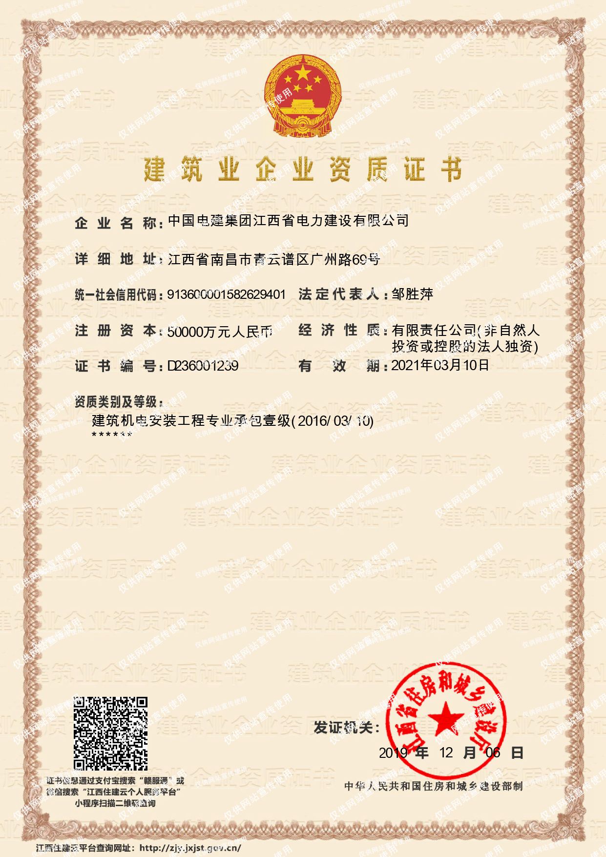 建筑业企业资质证书(电力工程施工总承包壹级)